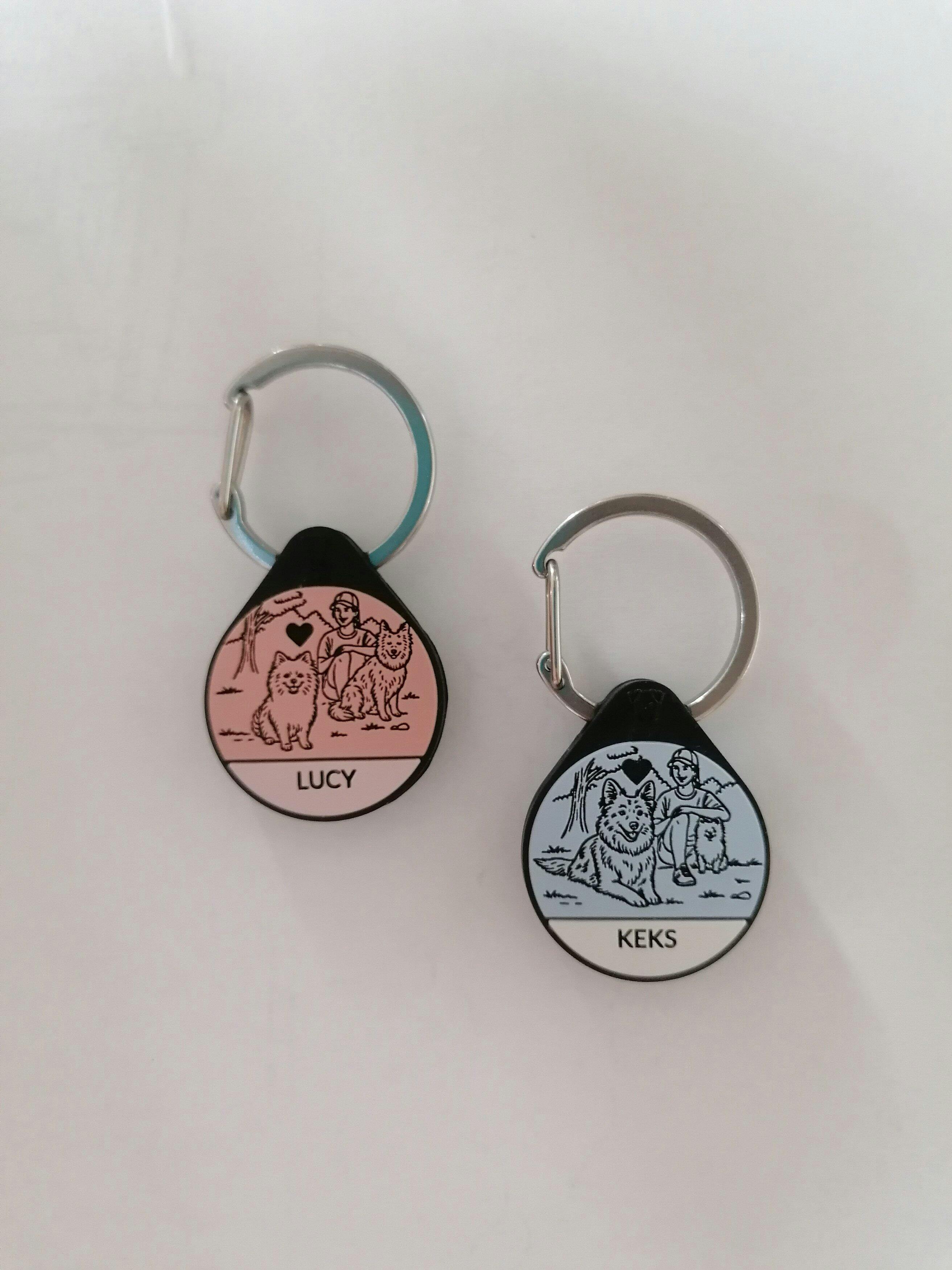 Photo of your dog: Send us a photo of your dog – with or without you – and we'll create a custom illustration. You'll receive a preview, and after your approval, the tag will be engraved.