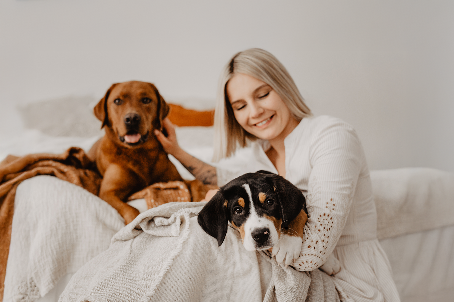 Natsu, mein ausgeglichener, abenteuerlustiger Labradorrüde, und Lexa, meine verspielte Große Schweizer Sennenhündin voller Lebensfreude, sind meine ständigen Begleiter und sorgen dafür, dass bei uns nie Langeweile aufkommt.