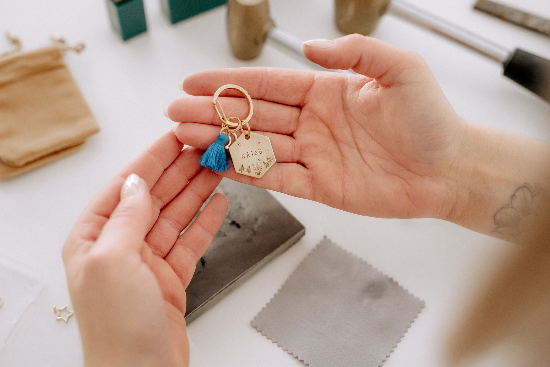 Im Frühjahr 2023 entstand meine erste handgestempelte Hundemarke aus Metall – aus der Idee wuchs schnell ein vielseitiges Sortiment mit verschiedenen Größen, Formen und abenteuerlichen Designs.